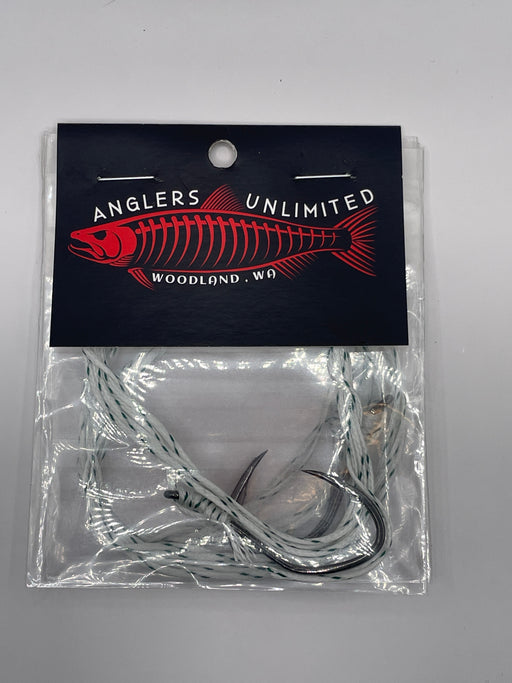 Anglers Unlimited ProductionsOut of stockHand tied spin glo leaders with trailer hooks at roughly 6 feet long so you can trim it down to your preferred length.