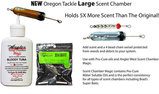 Oregon TackleOut of stockLarge Scent Chamber holds 5X more scent! Great for trolling or bottom fishing. 1 Scent Chamber per pack.