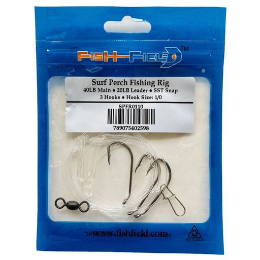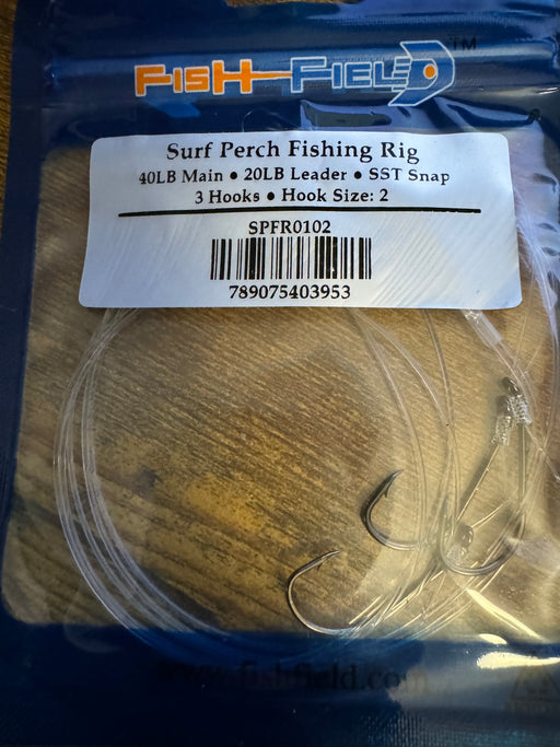 Fish-FieldOut of stockFish-Field Surf Perch Fishing Rig 40LB Main Line 20LB Leader SST Snap 3 Hooks same size Bait Holder Hooks in Sizes #1, #2, & 1/0 45 inches Long