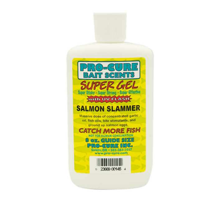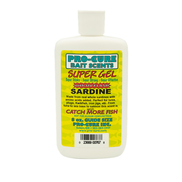 Super Gel has gotten more effective with the addition of UV enhancement. It's like attaching a lit light bulb to your lure or bait. The visibility brings fish in to investigate, and the scent gets them to feed. There is no other product on the market that even comes close to performing like Super Gel. Made from real bait and enhanced with powerful amino acids in a sticky base that sticks to lures, spoons, spinners, swim baits, soft baits, etc. for an exceptionally long time. Word of mouth has spread like wild fire, and in 26 years of making great products we've never had a product catch on like Super Gel. In both fresh and salt water formulas. Available in 2 oz. squeeze bottles or 8 oz. Guide Size squeeze bottles.